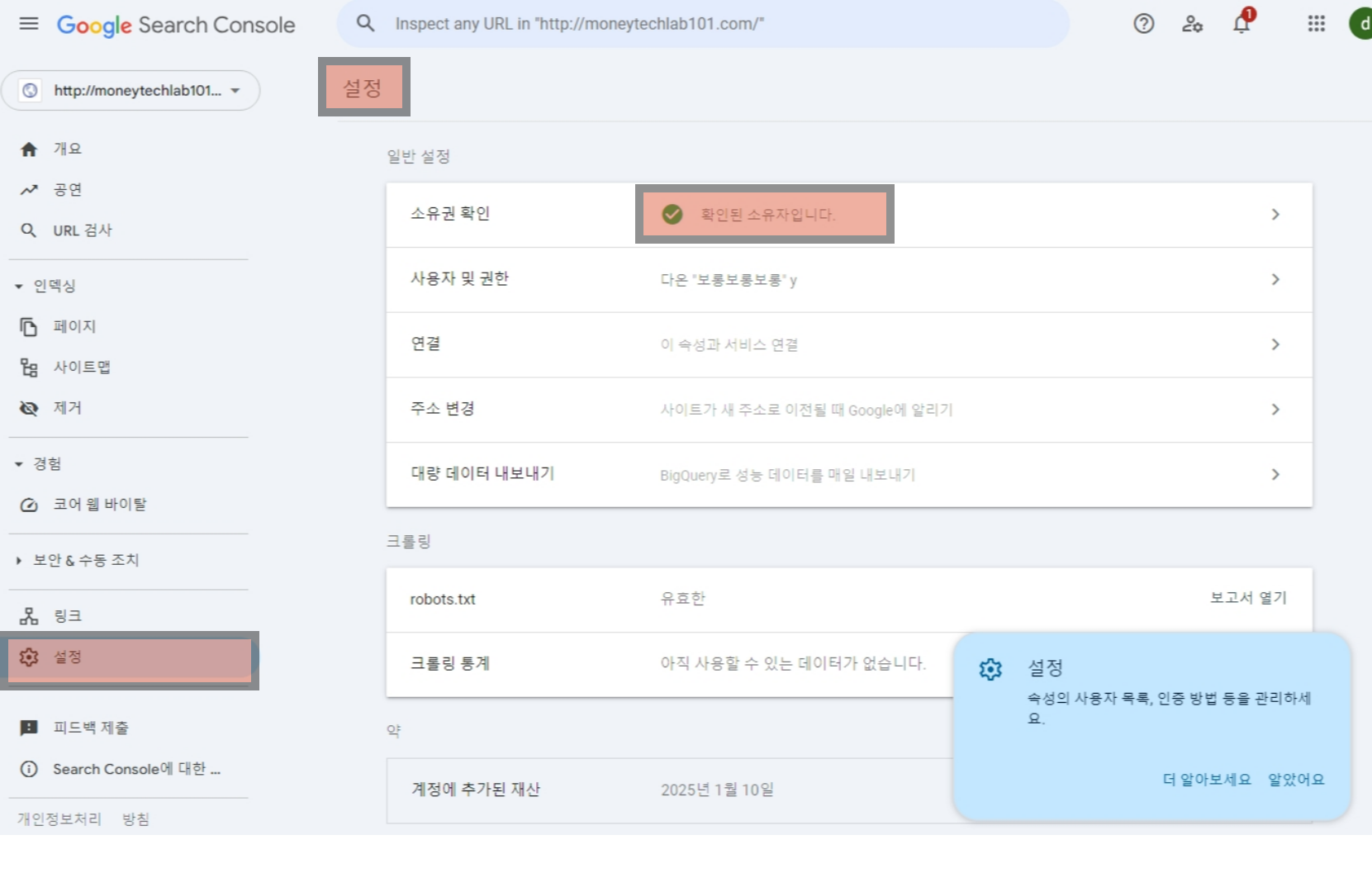 5. 구글 서치 콘솔에서 소유권 확인하기