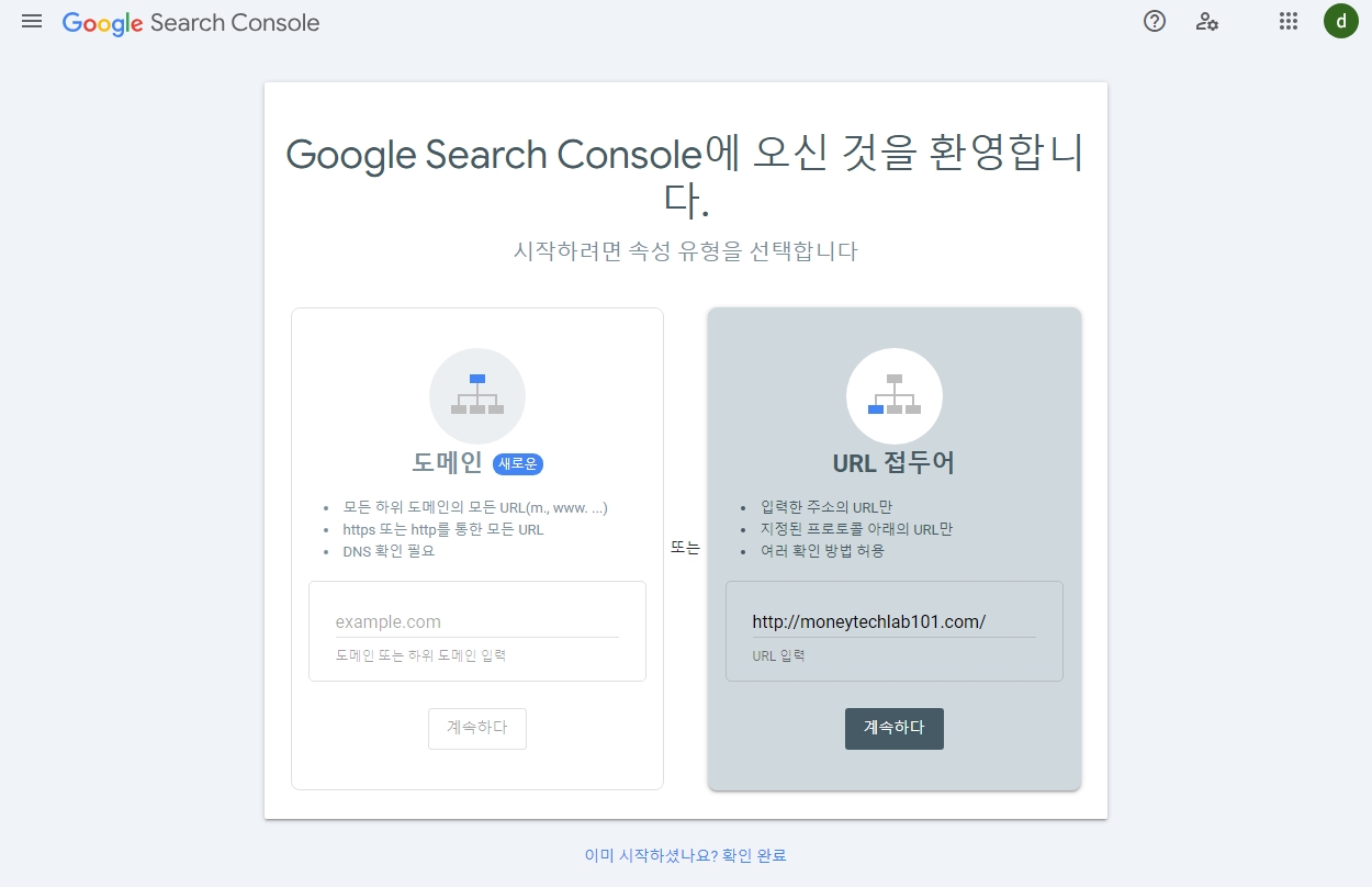 구글의 서치 콘솔 사이트를 등록하는 방법입니다.