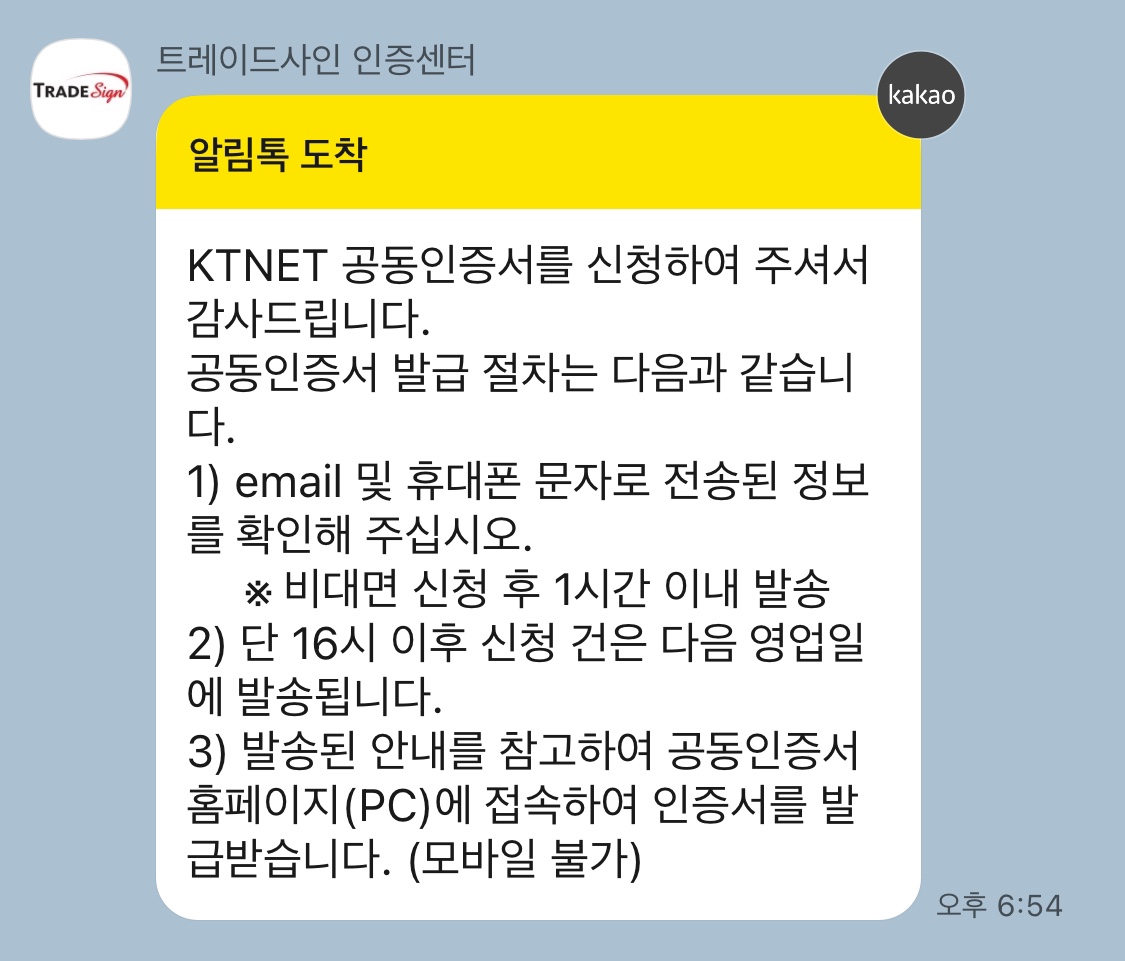 그리고 범용공동 인증서의 경우 오후 4시 이후에 구매하는 경우 다음 영업일에 발송됩니다.