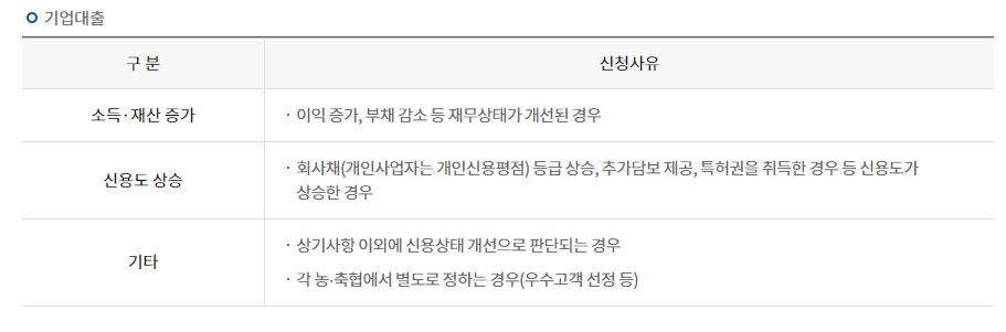 농협은행의 금리인하요구권 조건과 기업대출 신용도 상승 요인을 살펴 보겠습니다.