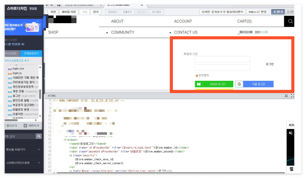 4. 까페24 홈페이지에서 로그인 연동하기- 디자인 설정하기